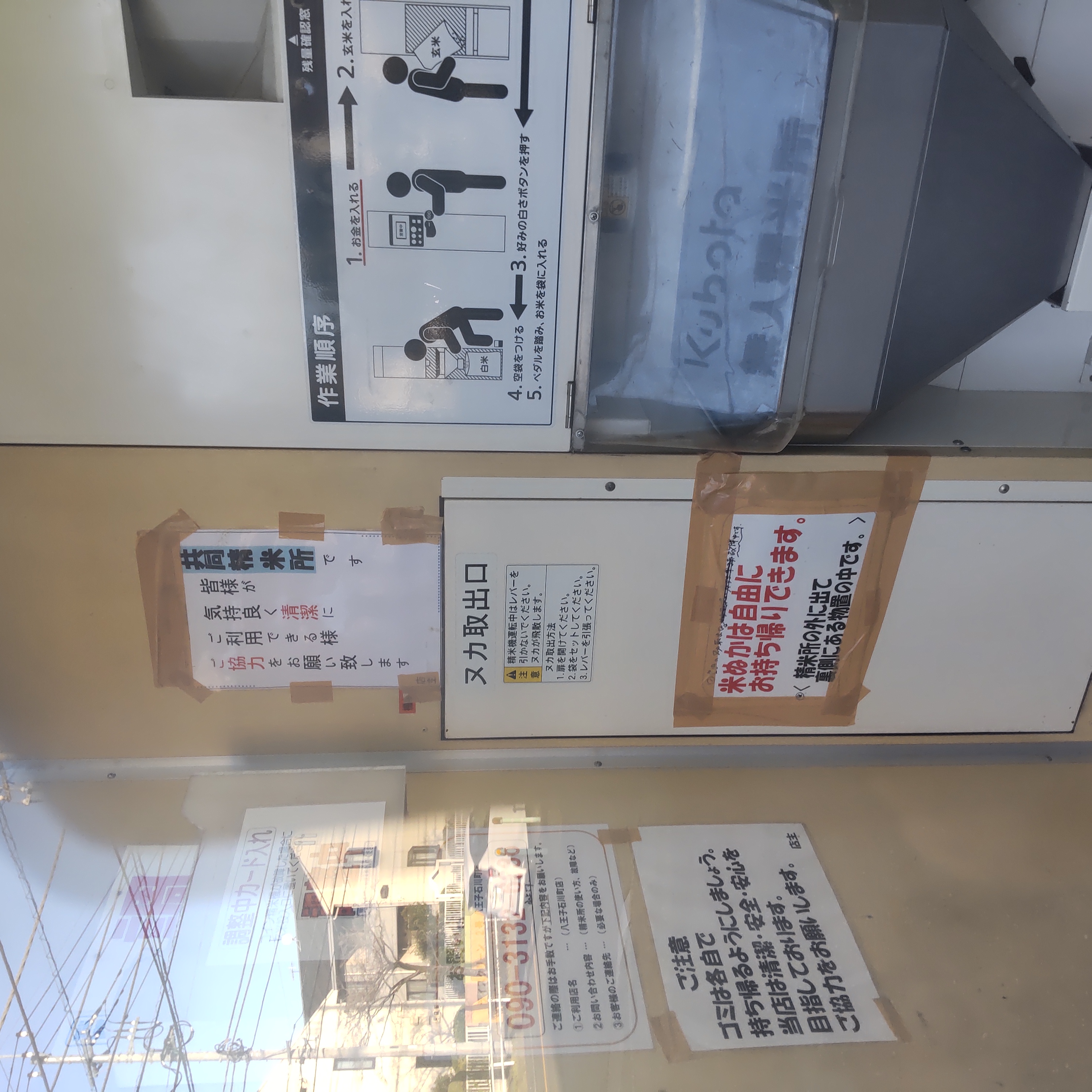 ぬかの持ち帰り・可能(精米所の外に出て裏側にある物置の中です。)